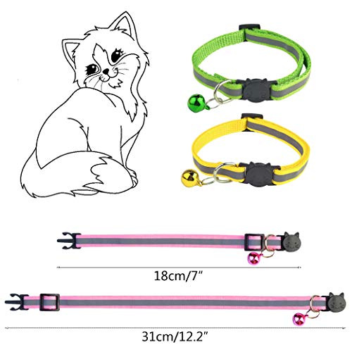 Mifengdaer - 12 collari riflettenti per gatti, a sgancio rapido, con campana, per interni ed esterni, per piccoli animali, 18-31 cm, 12 colori