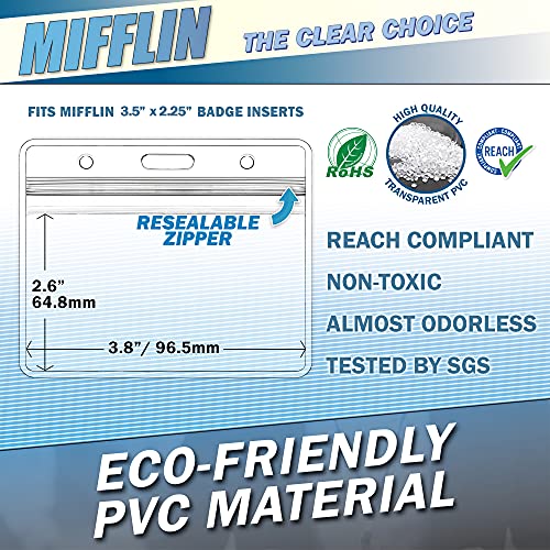 MIFFLIN Set di cordini piatti con porta badge identificativo orizzontale (cordino nero, porta tag trasparente 5,7 x 8,9 centimetri, confezione da 10)