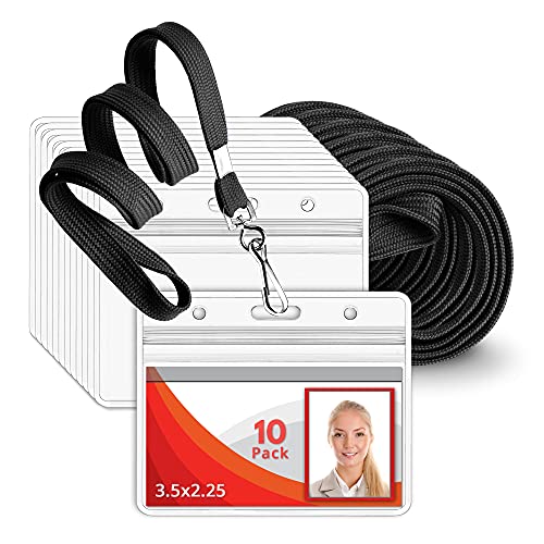 INCLUDE - 10 cordini neri in stile piatto lunghi 91,4 cm (45,7 cm appesi) + 10 portabadge orizzontali che si adattano a inserti di carta da 8,9x5,7 centimetri