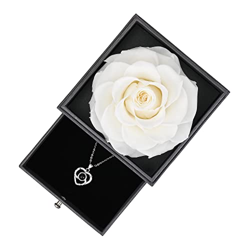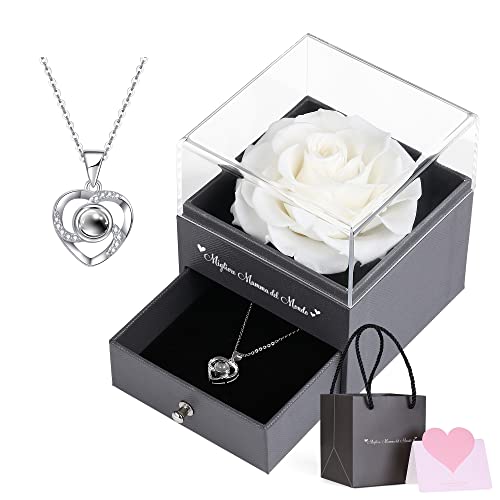 【Regalo per la festa della mamma, per la migliore mamma del mondo]: una vera rosa conservata mostra il tuo vero amore alla mamma, con la collana ti amo in 100 lingue in una confezione regalo, regali romantici per mamma, matrigna, suocera