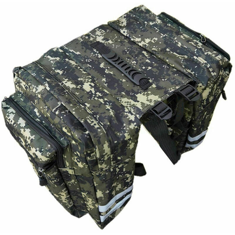 Questa borsa da bici presenta due ampi scomparti principali e tasche laterali, super capienti per la tua corsa. È facile da installare sul portapacchi posteriore della bicicletta. Caratteristiche: Due ampi scomparti principali con tasche laterali offrono ampio spazio di archiviazione. Tessuto in poliestere 600D con rivestimento interno in PVC, resistente all'acqua e all'usura. Le strisce riflettenti aumentano la visibilità notturna e la sicurezza. Le cinghie regolabili si adattano alla maggior parte dei portabiciclette, facili da installare. Grande capacità, ideale per lunghe distanze. Caratteristiche: Materiale: tessuto in poliestere 600D Colore: verde mimetico Dimensione complessiva: ca. 60 * 30 * 30 cm / 23,6 * 11,8 * 11,8 pollici Elenco dei pacchetti: 1 * borsa per sedile posteriore per bicicletta