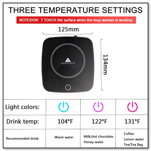 【3 modalità di riscaldamento intelligenti】 Lo scaldatazze (senza tazza) ha funzioni di riscaldamento e temperatura costante. Mantiene calde o calde tutte le tue bevande preferite. Premere il pulsante a sfioramento per regolare 3 livelli di temperatura per mantenere le bevande alla temperatura desiderata di 104°F o 122°F o 131°F.