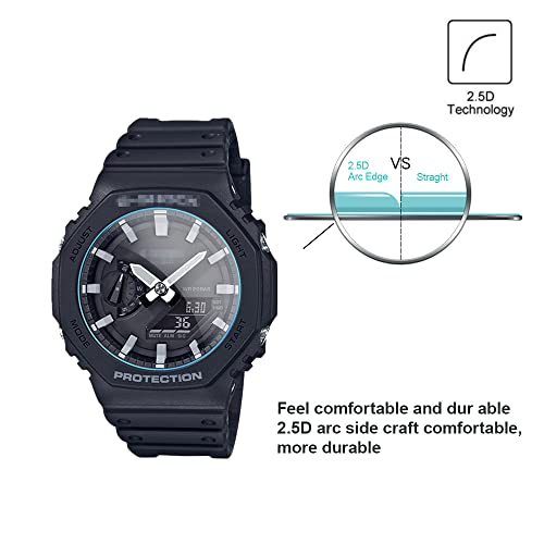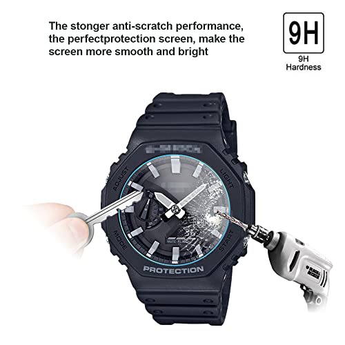 MIHENCE 3 pezzi, compatibile con Casio GA-2100, pellicola protettiva 9H, antigraffio, in vero vetro temperato di alta qualità, per smartwatch G-SHOCK GA-2100 / GA-B2100 / GA-2000