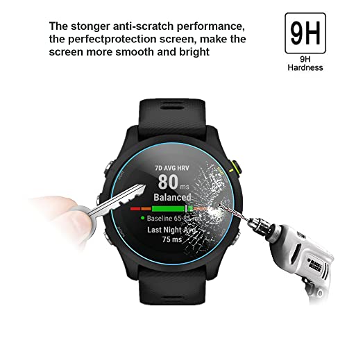 MIHENCE 3 pezzi, compatibile con Garmin Forerunner 255, pellicola protettiva 9H, antigraffio, in vero vetro temperato di alta qualità, per smartwatch Forerunner 255 Music