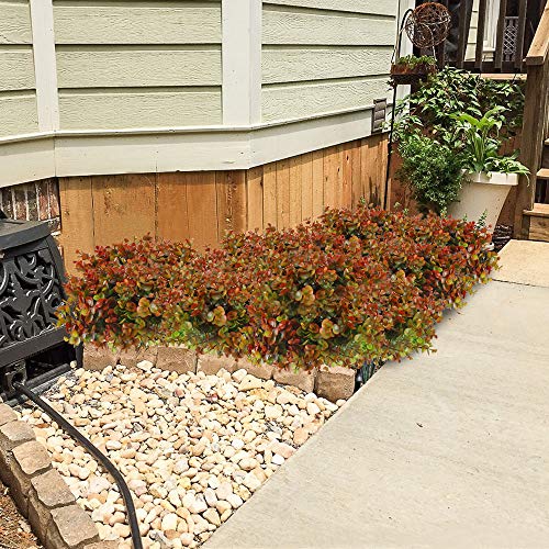 MIHOUNION Piante Artificiali da Esterno 4 Pezzi cespuglio Artificiale Piante finte plastica Arbusti Piante per Decorazioni Vaso Balcone Verdi& Rosso