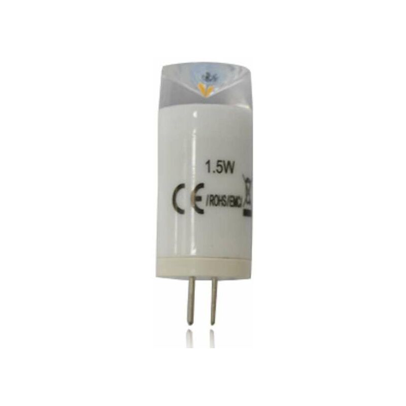 G4 tipo lampadina con una potenza di 1,5W. Luce equivalente a 14W. Dimensioni: 41mm*17mm, 120 lumen. Marchio Vision-EL 3000K 1.5W 15W 120 60° G4 1.5W lampadina equivalente a 14 Watt Cap G4 - si adatta direttamente a tutti i connettori G4 Illuminazione 60° Consumo ultra-basso: 1.5W Potenza luminosa equivalente a 14W Trova Vestibilità sottile: altezza 41mm larghezza 17mm Tensione di ingresso AC/DC12V Marchio Vision-EL Garanzia 2 anni Luce bianca calda 3000K Indice di protezione IP: IP20 Colore: Bianco Modulo: Epi Attacco: G4 Flusso luminoso (lumen): 150lm Angolo di illuminazione: 60° Durata di vita: 30000 ore Diffusore: Trasparente IRC CRI: ≥80 Classe energetica: A+ Température de couleur (K): Blanc Chaud 3000K Certificazione: CE e ROHS Colore della luce: Bianco caldo Garanzia: 2 anni Tensione elettrica: CA/CC 12 V Altezza con perni: 41 mm UV: Senza UV Disponibilità: In magazzino Stato del prodotto: lettera