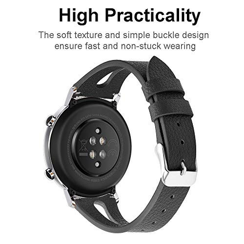 Miimall Cinturino 20mm Compatibile Con Huawei Watch GT2 42 mm, Cinturino di ricambio in Pelle femmina a sgancio rapido in pelle premium per Huawei Watch GT2 42 mm -Nero