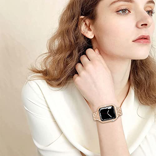 Miimall Cinturino compatibile con Apple Watch Series 7, 41 mm, 45 mm, con cristalli e strass, regolabile, in acciaio inox e metallo, per Apple Watch 45 mm, oro rosa