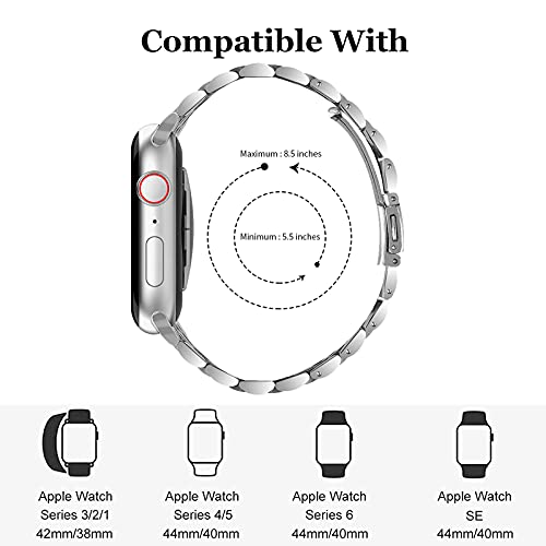 Miimall Compatibile con Apple Watch 42 mm 44 mm Cinturino di ricambio regolabile in acciaio inox con doppia fibbia deployante per Apple Watch Series 6/SE/5/4/3/2/1 argento + oro rosa