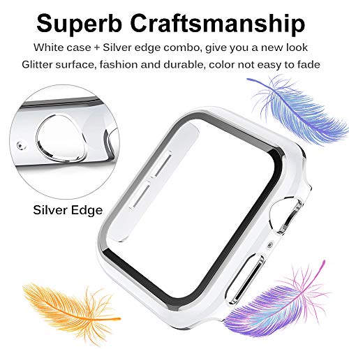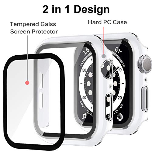 Miimall Compatibile con Apple Watch Series 4/5/6/SE 40mm Custodia per PC + Protezione per schermo in vetro temperato per serie iWatch 4/5/6/SE 40mm -Bordo nero/bianco