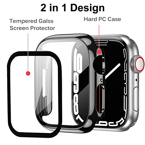 Miimall Custodia compatibile con Apple Watch Series 7 41 mm45 mm HD pellicola protettiva in vetro temperato, antiurto e rigido per paraurti in PC Allaround Edge Cover protettiva per Apple Watch