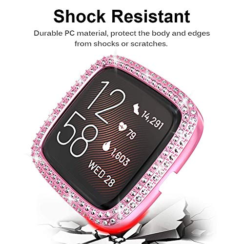 Miimall [2 Pezzi Compatibile con Fitbit Versa 2 Custodia, Strass Glitter Cover Cover Cover Protettiva - Argento + Rosa