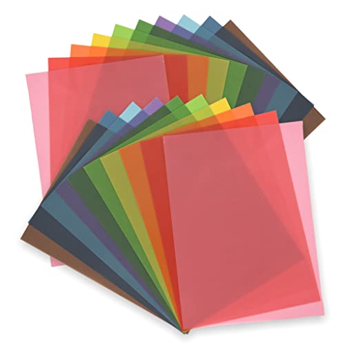 MIJOMA Colorato e versatile: 20 pagine di carta pergamena/carta trasparente in 20 colori, DIN A4, 110 g/m², traslucida alla luce, ideale per disegnare, artigianato e design. Creatività di nuovo