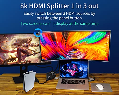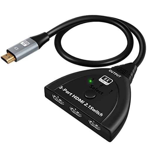 Mikeric Switch HDMI a 3 porte 8K, interruttore 3x1 48 Gbps interruttore direzionale 3 in 1 out ultra HD 8K @ 60Hz 4K @ 120Hz scatole selettori compatibili con monitor PS5 PS4 Xbox TV
