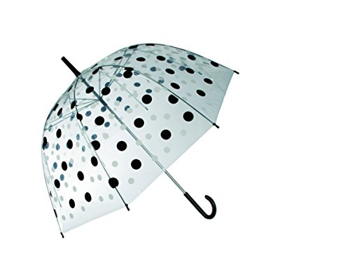 Miki - Ombrello Puntini Neri Pallini Cupola Trasparente Manico Elegante Moda Fashion