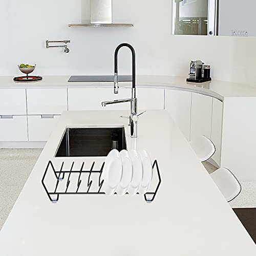 Mikihat Scolapiatti Nero, Scolapiatti da Appoggio, Scolapiatti da Cucina in Metallo, Scolapiatti da Appoggio per Lavello, Scolapiatti da Lavello per Piatti, Organizzatore da Cucina, 32 x 12 x 7.5cm