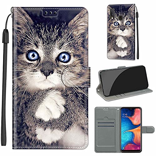 Mikikit Aggiorna 3D verniciata Flip Custodia Pelle per Samsung Galaxy A20e, Gatto carino Cover protettiva donna Telefono Shell pelle portafoglio resistente Supporto magnetico Case Custodia modello HD