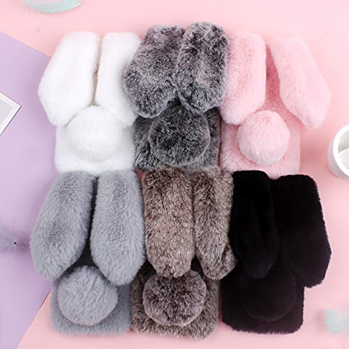 Custodia per Samsung A20e da ragazza carina - Custodia per telefono in peluche con pelliccia sintetica Con orecchie da coniglio pelose 3D e design della coda e design del telaio della fotocamera con strass scintillanti rendono il tuo telefono alla moda e accattivante, questa bella custodia in peluche è il miglior regalo per donne, ragazze e bambini.