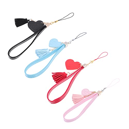 Mikikit 4 Pezzi Cinturini Catene Fai Da Te Cordino Cellulare Cuore Amore Custodia Pendenti Pratici Accessori Persi Catena Telefono Decori Mobile Creativo Pelle Ciondolo
