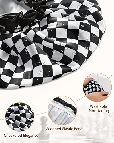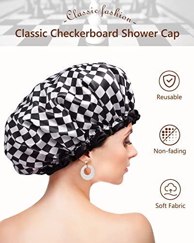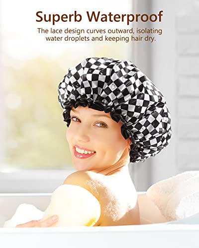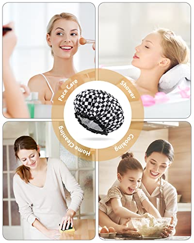 Mikimini Cuffia da doccia da donna, riutilizzabile, a doppio strato, impermeabile, con morbida fodera in PEVA, non sbiadisce, elastica e cuffia da doccia per capelli lunghi, confezione da 2, a scacchi