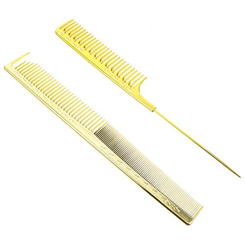 Mikinona 2Pcs Uomini Spazzola Per Topi Strumento Professionale Pettini Sottili Denti Da Taglio Per Stilista Pettine Dorato Acconciature Coda Salone Anti Vintage Largo Tutte Le