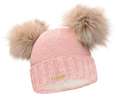 Mikos* Donna Ragazza Beretto Invernale in Maglia Imbottito con Due Pom Pom (689) (Rosa)