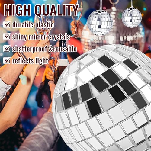 Quantità sufficiente: la confezione contiene 20 palline da discoteca, 3 diverse dimensioni, una quantità sufficiente può soddisfare le vostre esigenze di decorazione per feste, la vostra decorazione per torte sarà più lucida e accattivante.