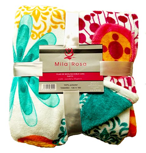 Mila Rosa - Plaid Double Face in Poliestere, Multicolore, Singolo, 130 x 160 x 2 cm