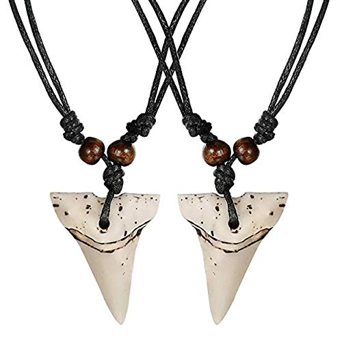 Milacolato 2pcs Collana con Dente di squalo Set Collana Fatta a Mano con Cordoncino in Cotone Regolabile per Uomo