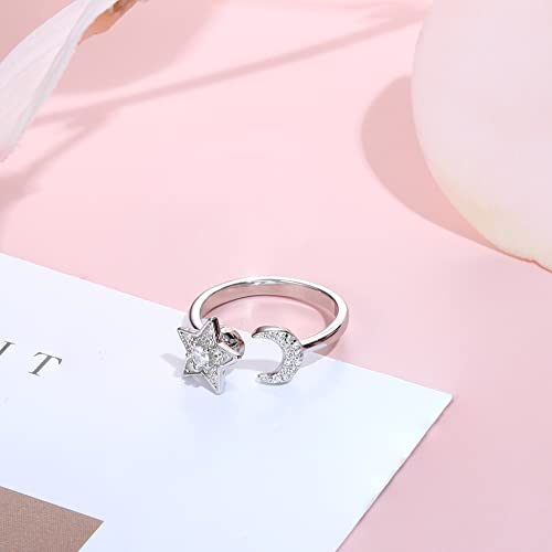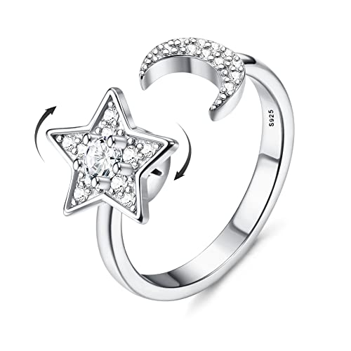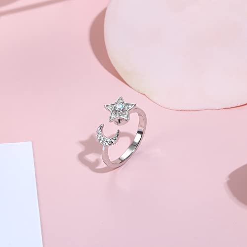 Milacolato Anello in Argento Sterling 925 per Le Donne Fidget Ring Spinning Ring Anello Aperto Regolabile Band Ring Impilabile Anello Moon Star Ring con Confezione Regalo