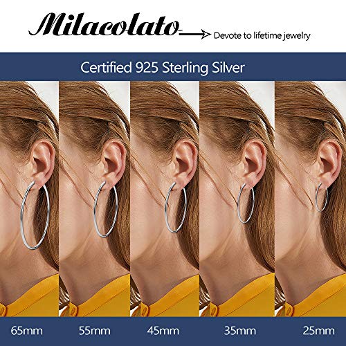 Milacolato Orecchini a Cerchio Grandi in Argento 925 per Donna Spessore 2 mm Orecchini a Cerchio Senza Fine con Taglio a Diamante Alto Lucido con Confezione Regalo 25/35/45/55 / 65MM