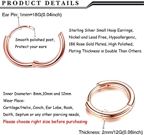 Milacolato Orecchini a Cerchio Piccoli in Argento 925 placcato oro 18 Carati 8 mm/10 mm/12 mm Orecchini a Cerchio Piccoli Huggie Orecchini a Cerchio con Piercing Alla Cartilagine per Donna