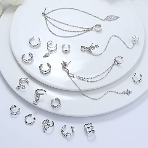 MILACOLATO 17 Pcs Orecchini Clip Donna Catena Non Piercing Regolabile Helix Cartilagine Clip On Wrap Orecchini A Catena Finti Orecchini Ear Cuff Del Polsino Dell'orecchio Argento
