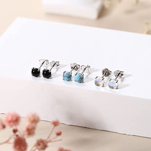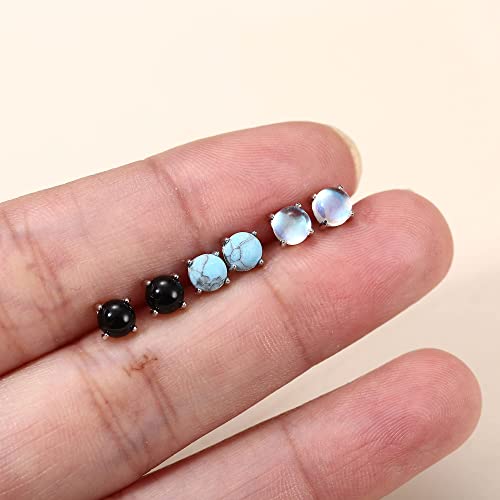MILACOLATO 3 Paia di Orecchini a Lobo da Donna in Argento 925, Orecchini a Bottone in Cartilagine Argento Sterling, Orecchini Rotondi Sintetici con Pietra di Luna Turchese Onice Nero