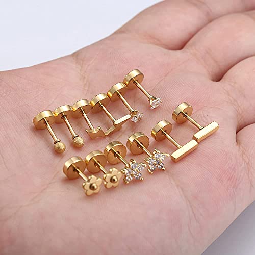 MILACOLATO 18 Paia di Orecchini Piccoli in Acciaio Inossidabile 18G per Donna Uomo Orecchini a Spirale con Cartilagine Flatback Orecchini con Stella a Sfera CZ Oro