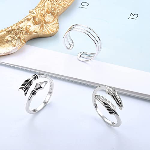 Milacolato 3 Pezzi 3 Pezzi Anelli per Le Donna Argento 925 Regolabile Anelli Aperti Piuma Pollice Impilabile Knuckle Anello Orizzontale Anello Set per Le Donna