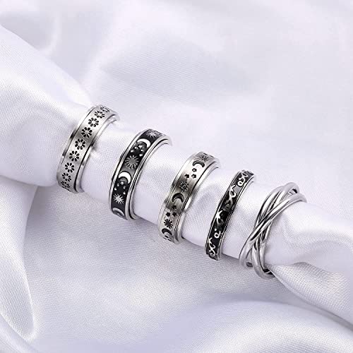 Set di Anell Fidget: ci sono molti stili diversi di anelli spinner per la tua scelta, tra cui anello con stella lunare, anello con fiore, anello con fase lunare. Vari nello stile, ti offre una scelta sufficiente per adattarsi ai tuoi diversi abiti.
