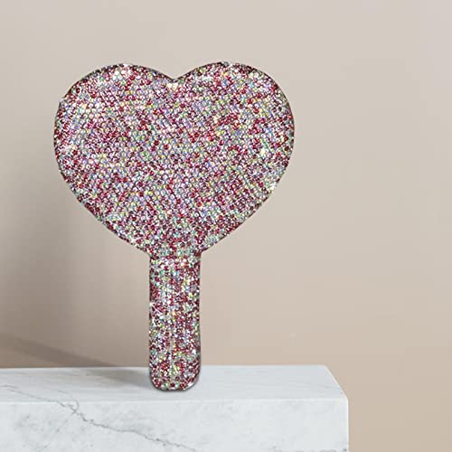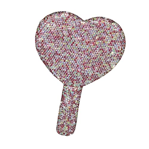 Milageto Piccolo specchio per trucco portatile Specchio cosmetico con manico Specchio cosmetico Decorativo con strass Decor Strass a forma di cuore per donne, ROSA