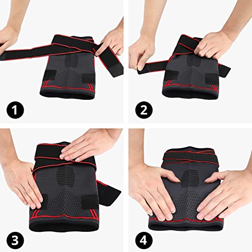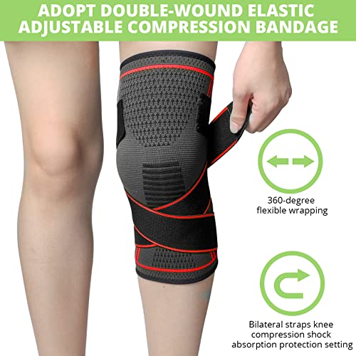 MILAIUN Ginocchiera Ortopedica 2 Pezzi, Tutore Ginocchio Legamenti Menisco, Elastica Antiscivolo Fascia Compressione Ginocchio,per Artrite e Il Recupero da Infortuni (Rosso-2XL)