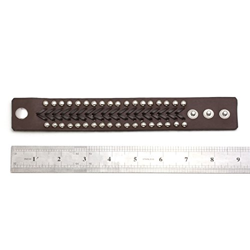 Milakoo Brown Punk Rock Biker Link Chain Bracciale in pelle Bracciale polsino Gothic 6.5-8.5"