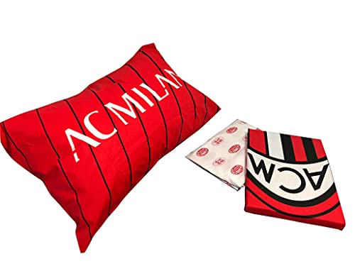 AC Milan, Completo Lenzuolo 1 Piazza E Mezza, 100% Cotone, Rosso Nero