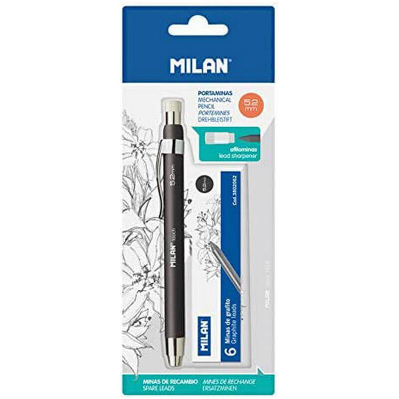 Matita meccanica 5,2 mm + mina + temperino. Matita meccanica professionale di colore nero per mina di diametro 5,2 mm. Include temperini e sei puntali in grafite e legno da 5,2 mm B per le ricariche.