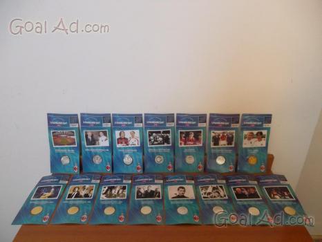 Una straordinaria collezione editoriale della Gazzetta dello Sport per celebrare la storia di una grande squadra nel momento del suo trionfo nella Champions League 2002 - 2003. 30 monete bagnate in oro o argento, 30 schede, 1 scatola di lusso. Tutte le monete sono come nuove ed ancora sigillate nella loro confezione originale. Opera per ricordare la 7a Champions rossonera vinta in finale contro la Juve. Inoltre 8 pagine speciali della Gazzetta dello Sport (Milanissimo.