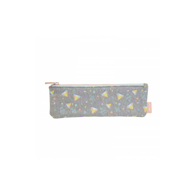 Piccolo astuccio piatto per matite. Pastello - Diamante di zucchero, grigio. Composizione: esterno e interno in poliestere. Misure: 23 x 7,5 x 1,5 cm.