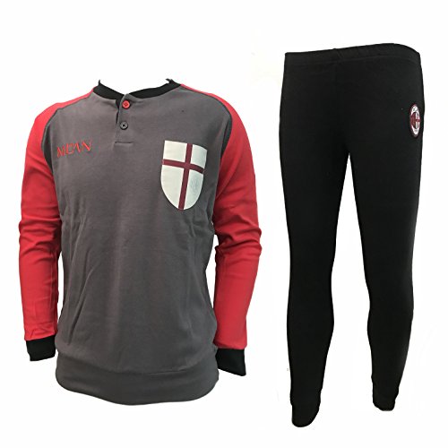 AC Milan Pigiama Ragazzo Lungo Caldo Cotone Prodotto Ufficiale Art. MI15058 (Antracite, 12 Anni)