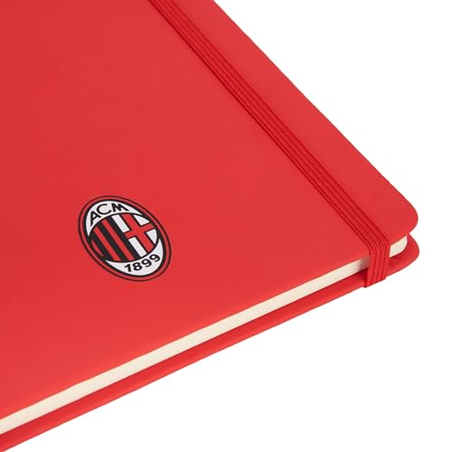 AC Milan Taccuino A5 con Logo, Pagine a Righe, 192 Pagine, Chiusura ad Elastico, Prodotto ufficiale, Rosso, Logo Classico