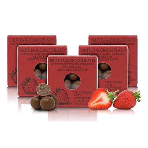 T'a Milano Pepite di frutta con fragola ricoperte di cioccolato al latte 36%, praline alla frutta e cioccolato - 60g (confezione da 5 pezzi)