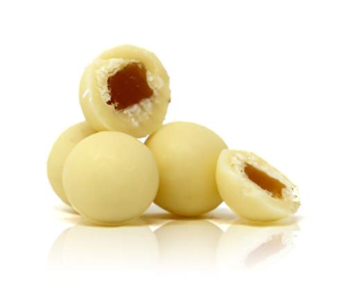 Pepite con ripieno di purea di pesca ricoperte di cioccolato bianco artigianale