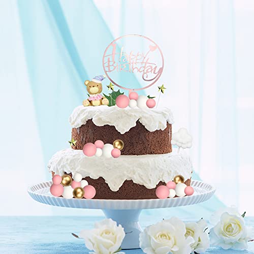 Milaosk 35 Pezzi Topper per Torte di Compleanno, Toppers per Cupcake con Palla di Schiuma Palla a Bolle Topper per Torta di Buon Compleanno Teddy Bear Decorazione per Torte Rosa per Ragazze