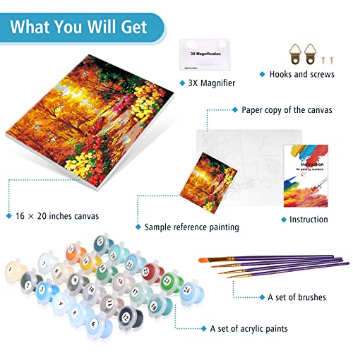 MILEADER DIY Dipingere con i Numeri per Adulti 16 * 20 Pollici Dipinto con i Numeri Kit DIY Dipinto ad Olio - Foresta (con Cornice in Legno)